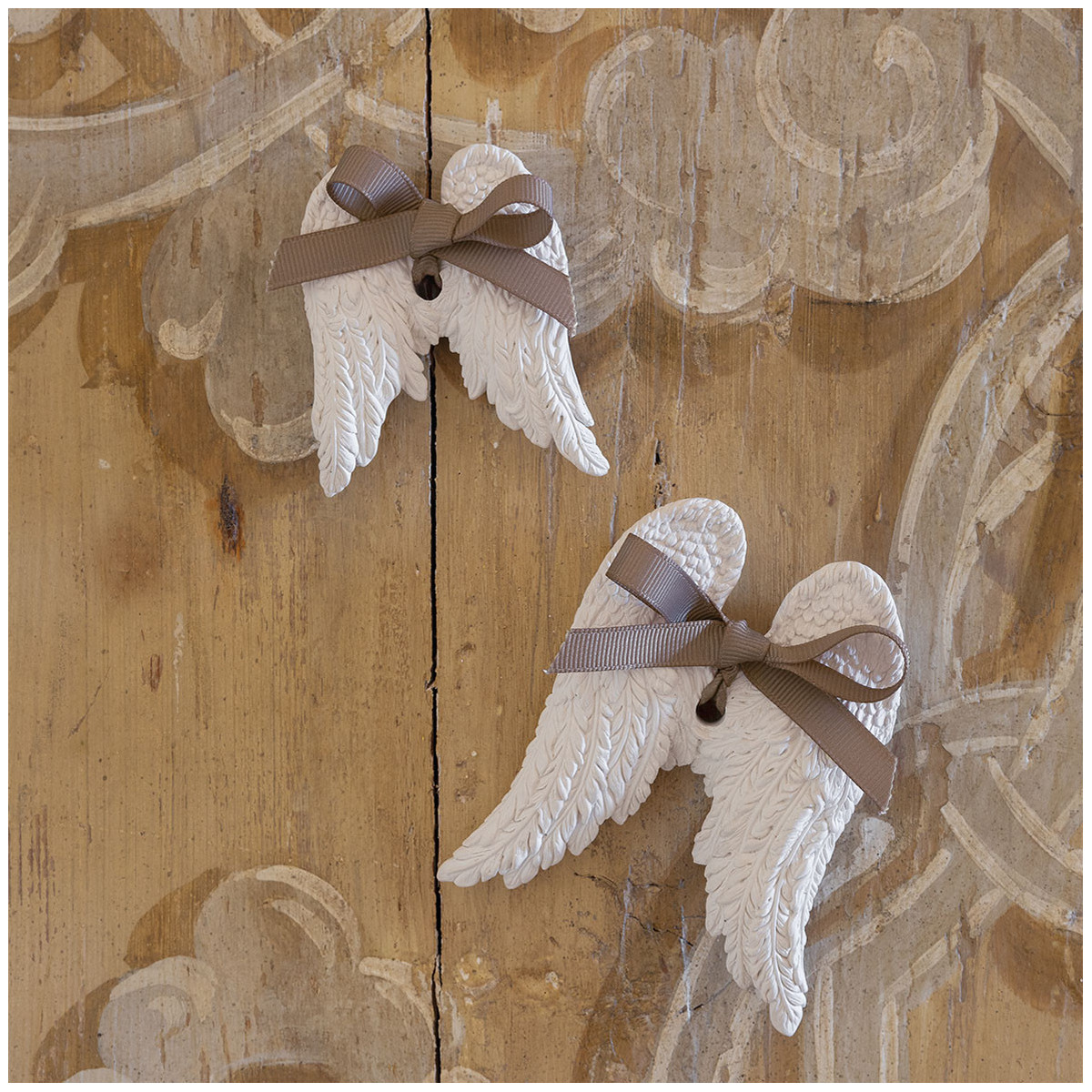 Deze volledig handgemaakte gipsdecoratie met engelenvleugels parfumeert subtiel en langdurig alle kleine ruimtes in uw huis, zoals kledingkasten, lades of bagage.
